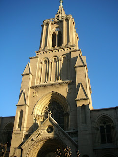 Saturday night my friend Rodrigo invited me to a friend's apt. and told me to invite friends which began with the two girls who live closest to me and then from there more or less snowballed to being about a dozen students in my program at this great apartment with a dozen Chileans and an amazing view of the cityscape. Of course we ended up wandering around the city a bit and finding more students along the way ... I ended up at a bar/restaurant with a cheese empanada so it was quite successful indeed : )